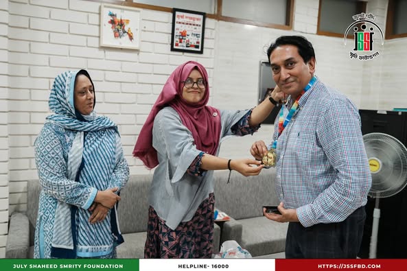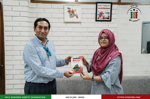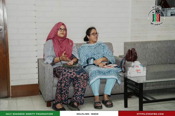 Jannatun Naim Promy, representative of July Konna Foundation, recently had a courtesy meeting with Mr. Kamal Akbar, CEO of July Shaheed Smrity Foundation. During the meeting, they engaged in an in-depth discussion about the contributions, leadership, and courage of women in the July movement, highlighting their pivotal role in shaping the nation’s history. Women played a leading role in the July-August people’s uprising, significantly advancing the movement and leaving an enduring mark on the struggle for justice and equality. July Konna Foundation has long been committed to women’s empowerment, development initiatives, and recognizing their contributions across various social sectors. During the meeting, both organizations expressed their determination to collaborate in the future, aiming to further amplify women’s roles and ensure their historical contributions are preserved for posterity.