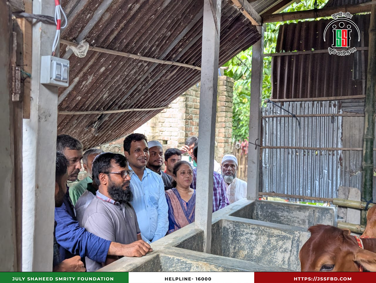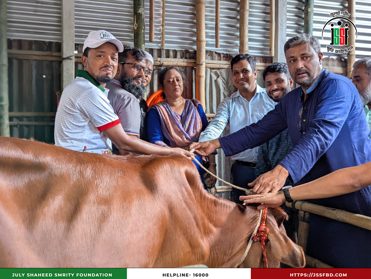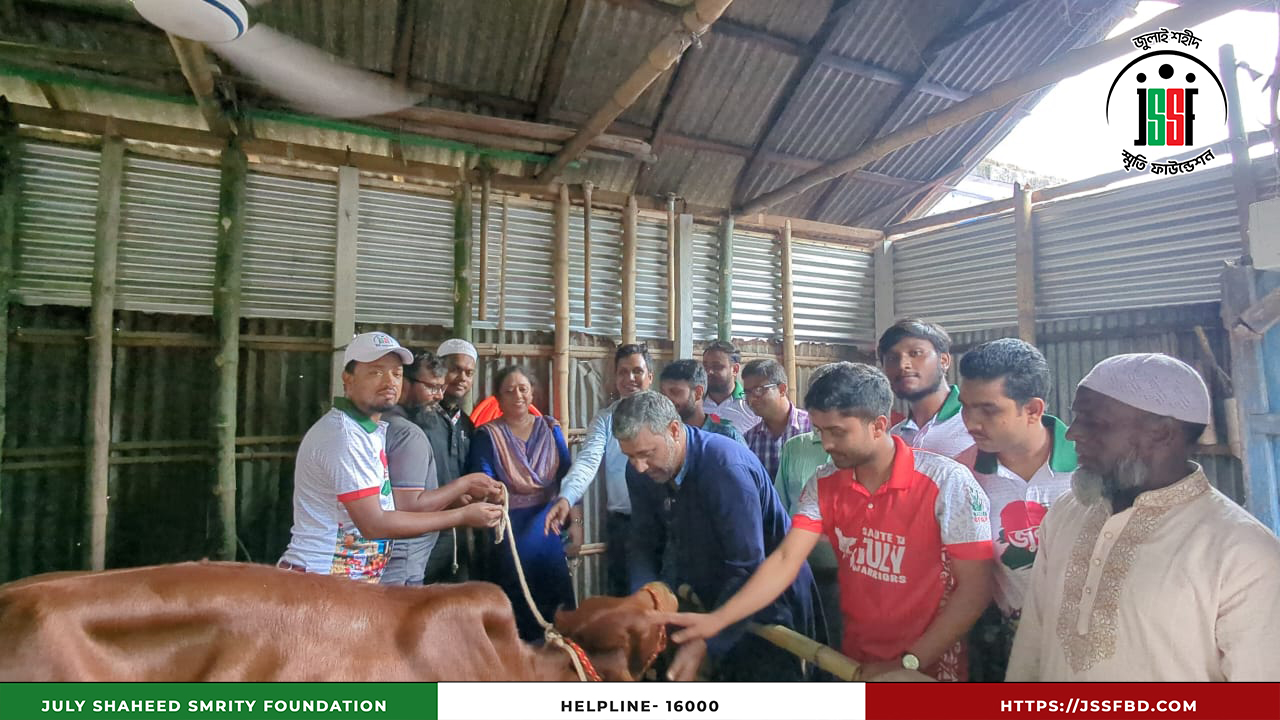 As part of a rehabilitation initiative, the July Shaheed Smrity Foundation has gifted cow to Mizanur Rahman, a courageous July warrior who lost his eyesight during the historic July–August mass uprising. On Tuesday afternoon, the Foundation’s General Secretary, Samsi Ara Zaman, formally handed over the gift at Mizanur Rahman’s residence in Harati Union, Lalmonirhat Sadar Upazila. This noble initiative stands as a shining reflection of respect, gratitude, and humanitarian responsibility toward the heroes of the July–August uprising. Carrying the spirit of July in its heart, the July Shaheed Smrity Foundation believes that standing beside those who sacrificed their lives and dreams for the nation is the truest expression of patriotism and moral duty.