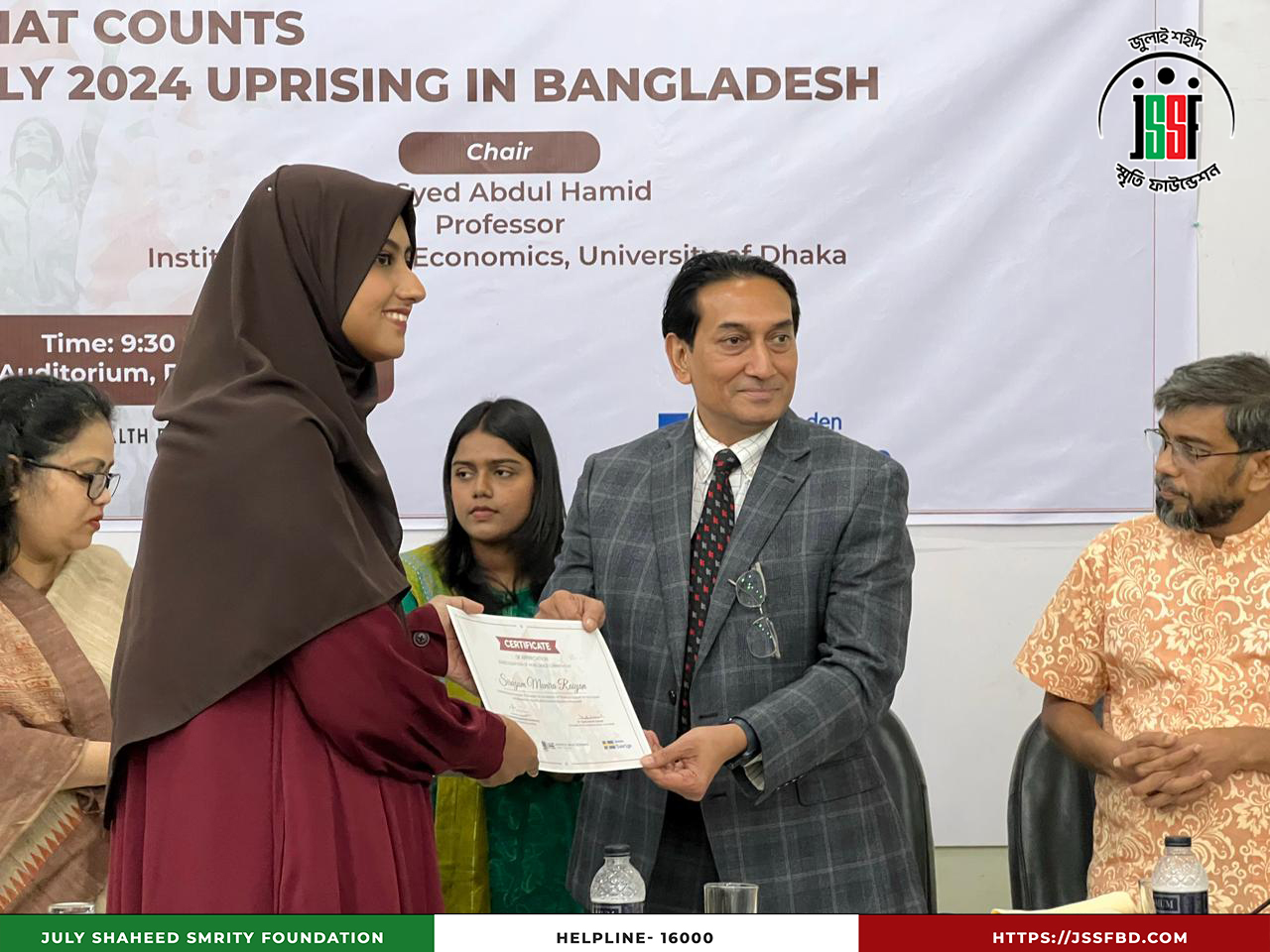 বৈষম্যবিরোধী ছাত্র আন্দোলনের আহতদের আর্থিক সহায়তা: সার্ডাপ অডিটোরিয়ামে আয়োজিত Dissemination Program-এ জুলাই শহীদ স্মৃতি ফাউন্ডেশনের অংশগ্রহণ