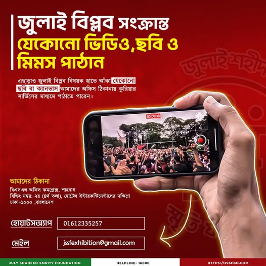 জুলাই যুদ্ধ ২০২৪ স্মরণ প্রদর্শনীতে জমা দিন