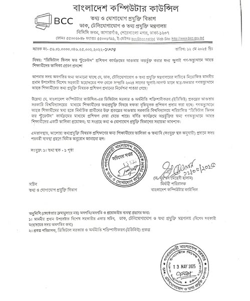 আপনার সদয় অবগতির জন্য জানানো যাচ্ছে যে, ডাক, টেলিযোগাযোগ ও তথ্যপ্রযুক্তি মন্ত্রণালয়ের দায়িত্বে নিয়োজিত মাননীয় প্রধান উপদেষ্টার বিশেষ সহকারীর নির্দেশনায়,