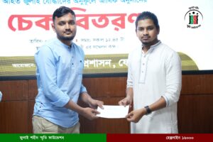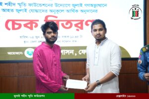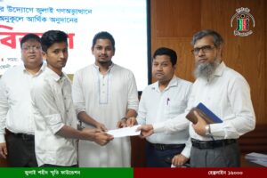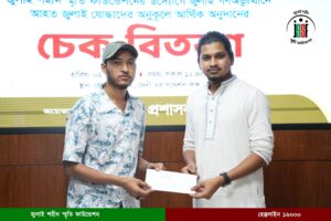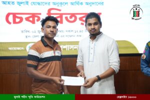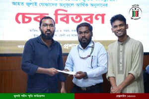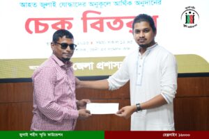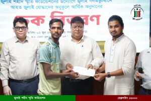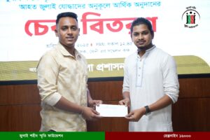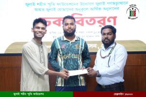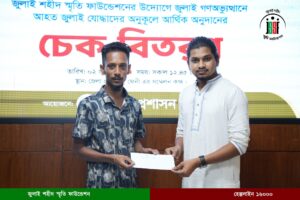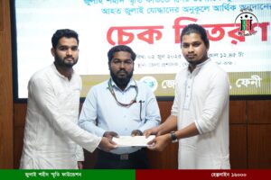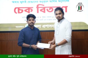 In honor of the brave individuals injured during the July Uprising, financial assistance is being provided for their medical treatment. Thanks to the active participation and sincere cooperation of the people of Feni District, the impact of this humanitarian initiative has multiplied significantly.