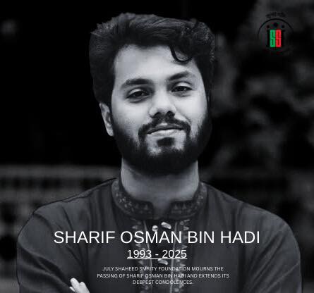 গভীর শোক ও দুঃখের সাথে জানাচ্ছি, শরীফ ওসমান বিন হাদি আর আমাদের মাঝে নেই।