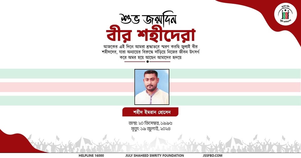 Today, December 20, we pay our deepest respect and heartfelt tribute to July martyr Imran Hosen on his birthdays.