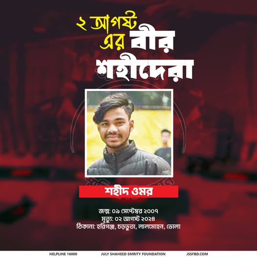 The people of Bangladesh have never bowed to oppression. The blood of Shaheed Omar sharpens our spirit of struggle — reminding us that the path of justice never stops.