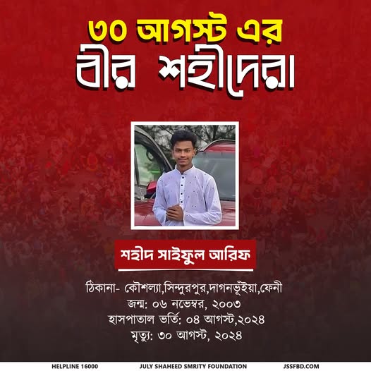 The immortal hero of August 30 — Shaheed Saiful Arif.