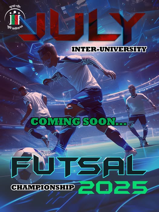 খেলার মাঠে একতা, আন্দোলনের চেতনায় গর্ব জুলাই-আগস্ট গণঅভ্যুত্থান শুধু একটি প্রতিবাদ ছিল না—ছিল সাহসী ছাত্রসমাজের ঐক্যবদ্ধ এক রুখে দাঁড়ানোর ইতিহাস। এই টুর্নামেন্টের উদ্দেশ্য সেই ঐক্যের চেতনাকে আবারও জাগিয়ে তোলা—যেভাবে জুলাই-আগস্ট আন্দোলনে দেশের সকল পাবলিক ও প্রাইভেট বিশ্ববিদ্যালয়ের শিক্ষার্থীরা একসাথে দাঁড়িয়েছিল, ঠিক সেভাবেই আবার একত্রিত হবে তারা খেলাধুলার মঞ্চে। জুলাই শহীদ স্মৃতি ফাউন্ডেশন প্রথমবারের মতো আয়োজন করতে যাচ্ছে July Inter University Futsal Championship 2025! 🎓 অংশগ্রহণযোগ্য: দেশের সকল বিশ্ববিদ্যালয় ও কামিল মাদ্রাসা 📅 সম্ভাব্য শুরু: ৮ই আগস্ট ২০২৫ 📢 রেজিস্ট্রেশন ও বিস্তারিত তথ্য খুব শীঘ্রই জানানো হবে UNITY ON THE FIELD, PRIDE IN THE SPIRIT OF THE UPRISING The July–August uprising was more than just a protest—it was a powerful stand of unity by the student community. This tournament aims to reunite students of all public and private universities—just as they stood together during the historic July–August movement. Through the spirit of sportsmanship, we rekindle the unity, strength, and courage of that uprising. The July Shaheed Smrity Foundation proudly presents the first-ever July Inter University Futsal Championship 2025! 🎓 Eligible: All universities and Kamil-level madrasas across Bangladesh 📅 Tentative Kickoff: August 8, 2025 📢 Registration & Details: Coming very soon! জুলাই শহীদ স্মৃতি ফাউন্ডেশনে ডোনেট করতে ভিজিট করুন: 👉 https://jssfbd.com/donation/ 📞 হটলাইন: ১৬০০০