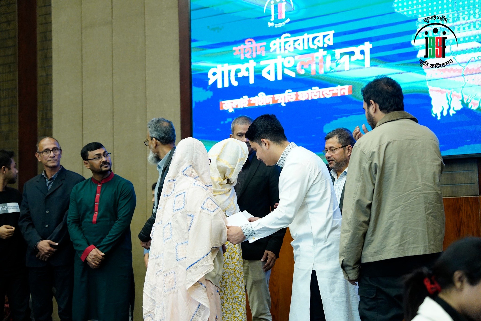 জুলাই শহীদ স্মৃতি ফাউন্ডেশন আয়োজিত ‘শহীদ পরিবারের পাশে বাংলাদেশ’ কার্যক্রমের মাধ্যমে আমরা গর্বের সঙ্গে শহীদ পরিবারের পাশে দাঁড়িয়েছি, তাঁদের সম্মান ও ত্যাগের প্রতি শ্রদ্ধা জানিয়ে। ঢাকা অঞ্চলের প্রথম পর্বের কিছু মুহূর্ত ক্যামেরাবন্দি করেছি।