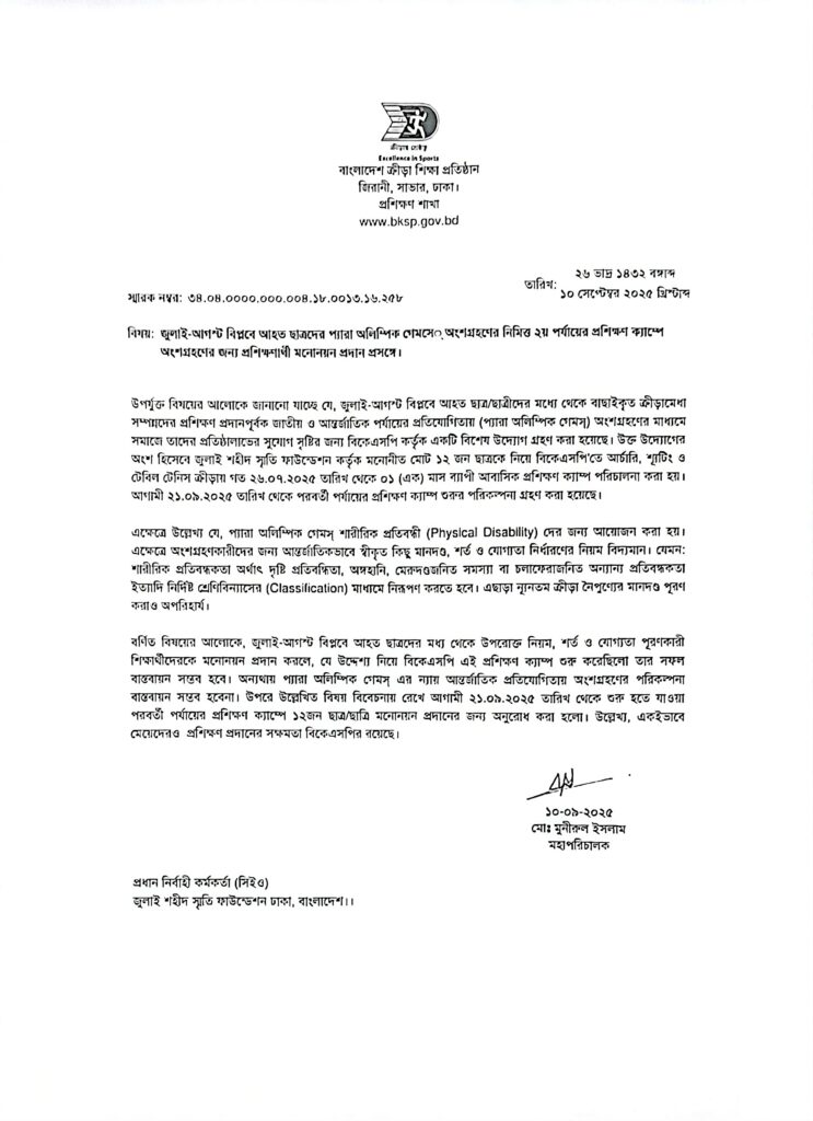 On its 1st founding anniversary, July Shaheed Smrity Foundation handed over a shop to injured July warrior Gazi Salauddin, who lost vision in one eye and partial vision in the other during the July Uprising. Once a businessman, he was forced to shut down his work due to treatment and family expenses, leaving his family in hardship.