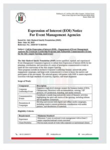 JSSF is inviting proposals from experienced and reputed event agencies to plan, coordinate, and execute: