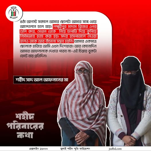 All members of the July Martyrs Memorial Foundation firmly believe that truth, justice, and fairness will ultimately prevail. They remain fully committed — through their utmost effort and intellect — to eradicating all forms of oppression and cruelty from this nation. The Foundation neither provides nor will ever provide any kind of shelter or support to anyone involved in such acts.