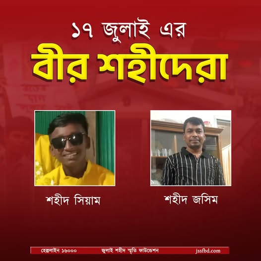 এই দিনে শহীদ হয়েছেন দুই জন — শহীদ সিয়াম ও শহীদ জসিম।
