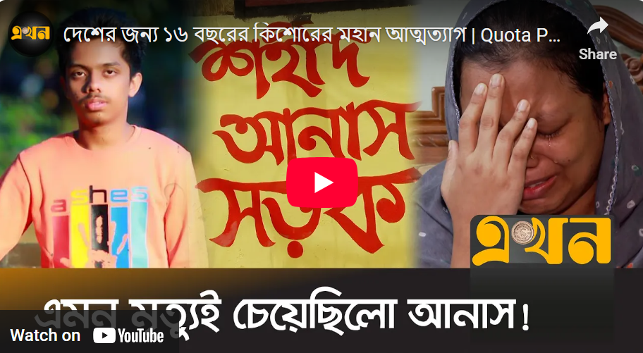 মাত্র ১৬ বছরের কিশোর আনাস নিজের জীবন উৎসর্গ করেছেন দেশের ন্যায়বিচার ও ভবিষ্যৎ প্রজন্মের মুক্তির জন্য। তার সাহস, তার চিঠি, আর তার রক্ত আজ কোটি তরুণের হৃদয়ে স্বাধীনতার নতুন শপথ জাগিয়েছে।
