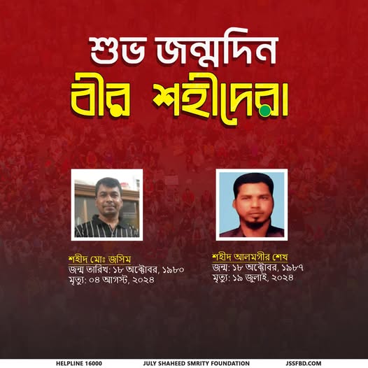 শুভ জন্মদিন, বীর শহীদরা — আপনাদের জন্ম আমাদের জাতির অমর গর্ব ও অনুপ্রেরণা।